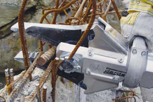 Die Schere dieser Hydraulikzange kann einen Stahlstab von 30mm durchtrennen. Eine der zahlreichen Anwendungen ist das Freischneiden von Unfallopfern aus dem Auto.Aufgabe